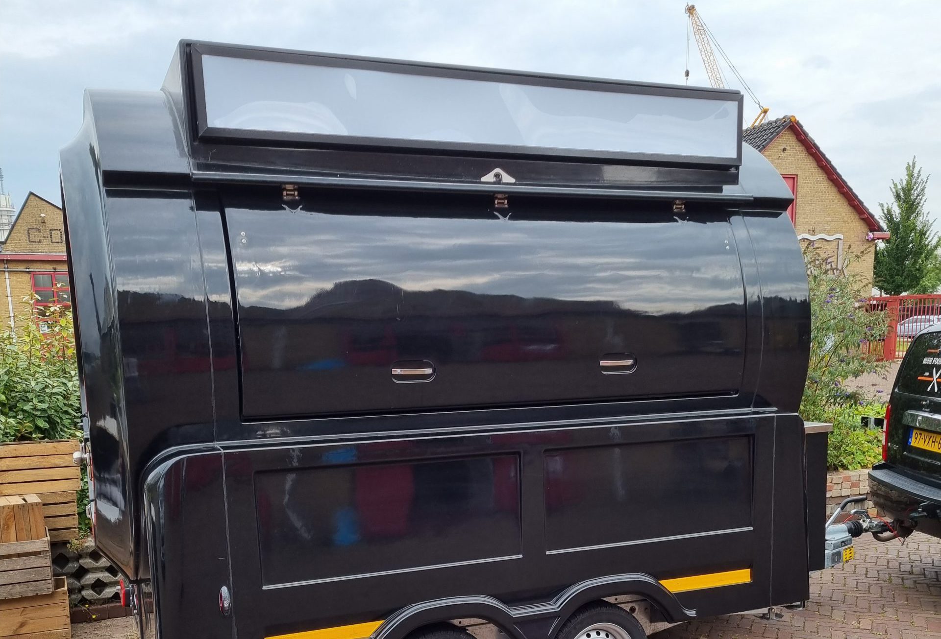 Om er echt jouw persoonlijke Foodtruck van te maken hebben we gezorgd dat er een persoonlijke reclame bovenop kan met verlichting. Wij maken een bord voor jou met de juiste bedrijfsnaam of logo. Deze is dan met verlichte letters en logo zodat je goed opvalt! Hoe persoonlijk wil je het hebben?! Kijk naar het voorbeeld, echt uniek!